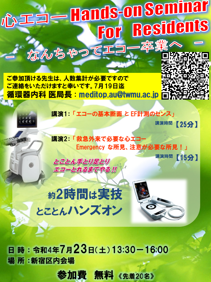 2022年7月23日(土)→8/27(土)に変更:心エコーハンズオンをオンサイトで開催します!