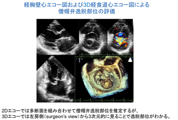 - 弁膜症(僧帽弁疾患・大動脈弁疾患・三尖弁疾患・肺動脈弁疾患・人工弁)…弁の形態や弁の狭窄、逆流の重症度、人工弁の機能評価