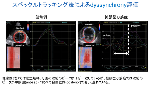 - 心膜・心筋疾患(拡張型心筋症・肥大型心筋症・拘束型心筋症・心膜疾患など)…心臓の形態、心機能(収縮・拡張障害)評価、心臓同期不全(dyssynchrony)の評価、心嚢液の有無