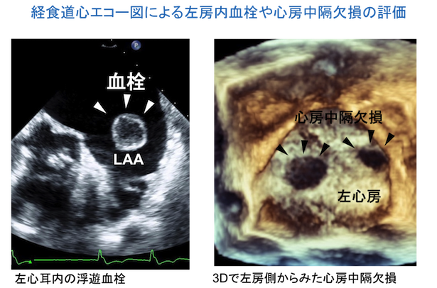 - 脳梗塞等の塞栓源の検索 (左房,左心耳,右心耳,卵円孔開存,心房中隔欠損など)