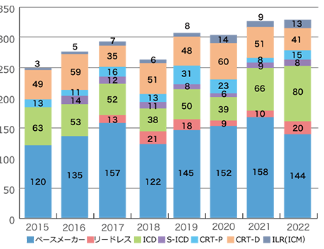 植え込み型心臓治療デバイスに関しては、従来のペースメーカーのみならず、リードレスペースメーカーの植え込みも行っております。 また致死性不整脈に対する植え込み型除細動器(ICD)は、従来のICDのみならず、完全皮下植え込み型ICD(S-ICD)の植え込みも行っております。 そのほか、重症心不全に対する両心室ペースメーカー(心臓再同期療法)の植え込みも積極的に行っております。