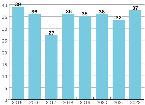 全国の大学病院でも常に上位5位以内の症例数を行っております。